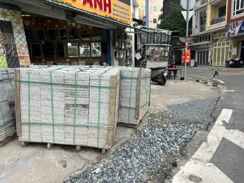 Chuẩn bị gạch lát vỉa hè. Ảnh: QUỐC HÙNG