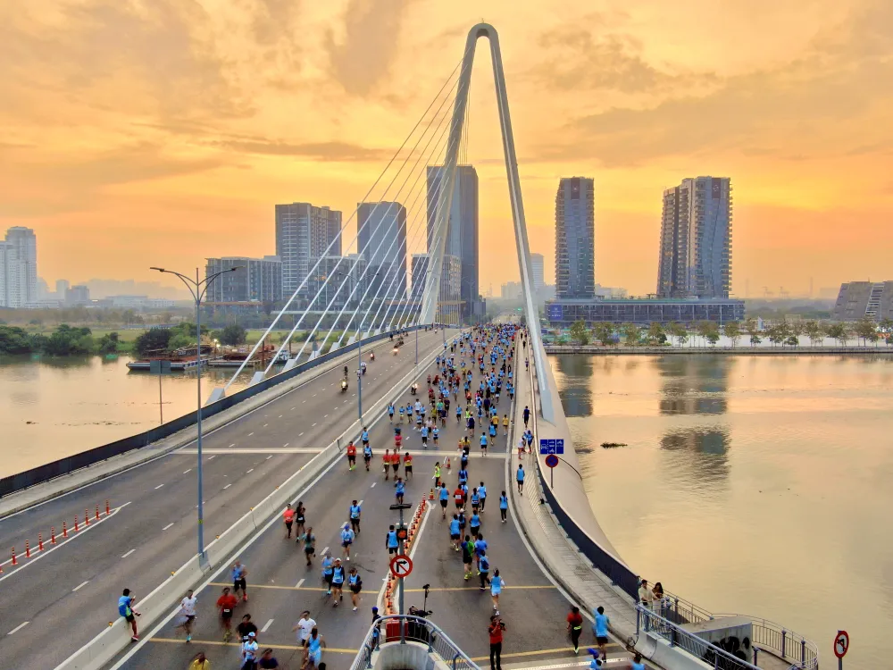 Cuộc thi marathon qua cầu Ba Son, vượt sông Sài Gòn. Ảnh: HOÀNG HÙNG