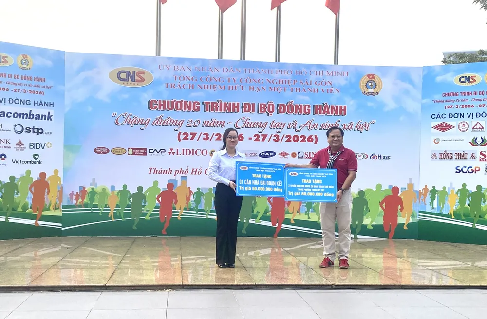 Tại chương trình sáng nay, Ban lãnh đạo CNS đã trao kinh phí hỗ trợ cho các công đoàn viên có hoàn cảnh khó khăn thuộc 15 cơ sở thành viên. Cùng với đó, trao kinh phí xây dựng 1 mái ấm công đoàn (trị giá 60 triệu đồng), 2 căn nhà đồng đội (trị giá 80 triệu đồng/căn) và 1 căn nhà tình bạn (60 triệu đồng), công đoàn viên có hoàn cảnh khó khăn. Ngoài ra, lãnh đạo CNS cũng trao kinh phí hỗ trợ phường Trung Mỹ Tây (50 triệu đồng và một căn nhà đại đoàn kết trị giá 60 triệu đồng).