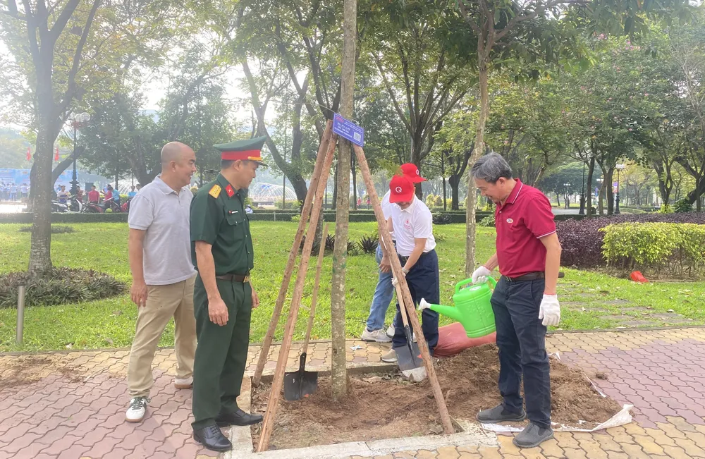 Sau hoạt động đi bộ đồng hành, khách mời và Ban lãnh đạo cùng toàn thể cán bộ nhân viên CNS tham dự chương trình tham gia vào hoạt động trồng cây lưu niệm tại Khu Công viên Phần mềm Quang Trung.