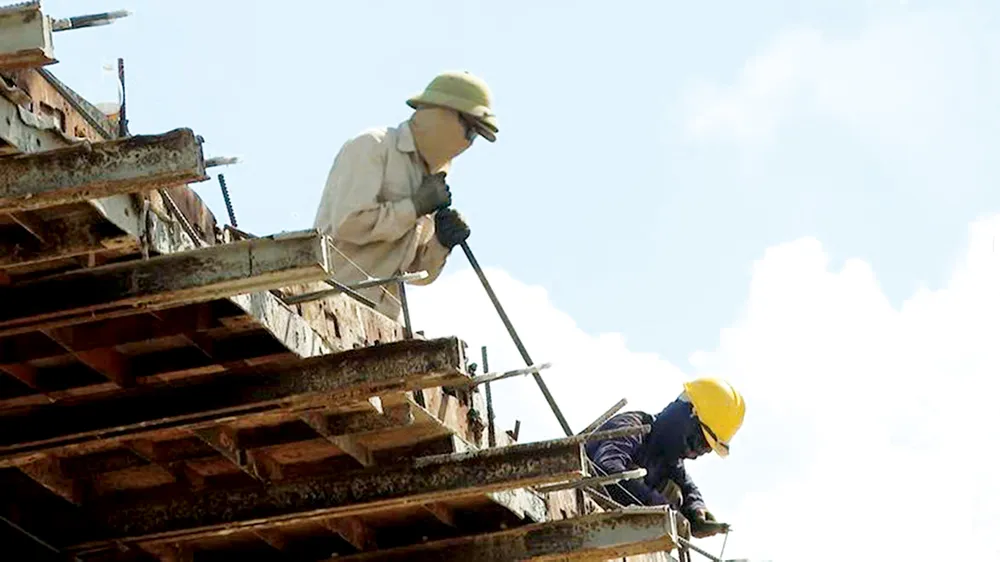 Công nhân hối hả thi công dự án đường 991B (TPHCM). Ảnh: QUANG VŨ