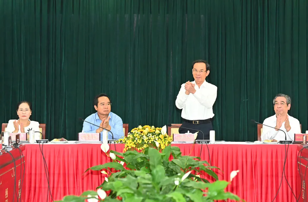 Bí thư Thành ủy TPHCM Nguyễn Văn Nên kết luận buổi làm việc. Ảnh: VIỆT DŨNG