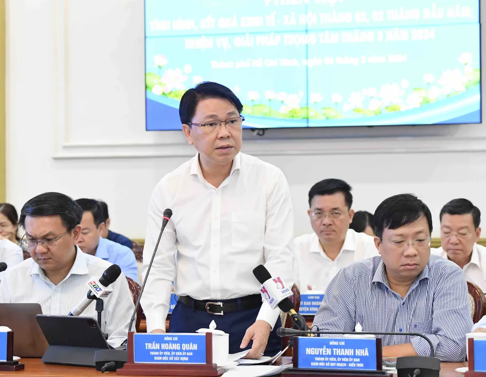 Giám đốc Sở Xây dựng TPHCM Trần Hoàng Quân phát biểu. Ảnh: VIỆT DŨNG