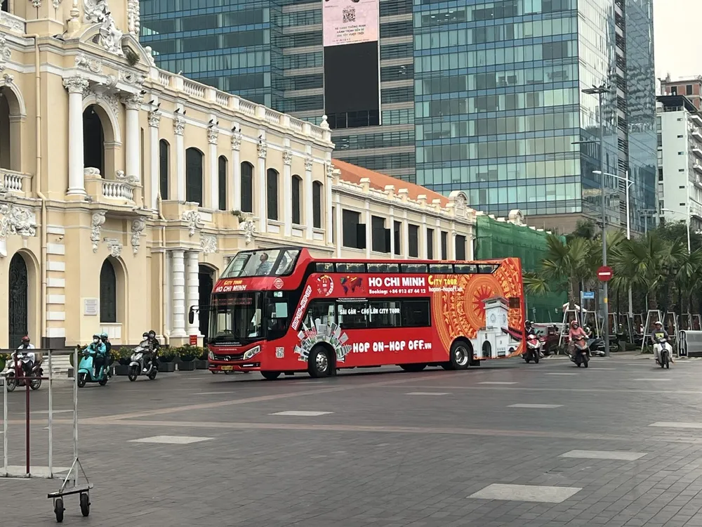 Xe ô tô 2 tầng, thoáng nóc hoạt động tại khu vực trung tâm Sài Gòn. Ảnh: QUỐC HÙNG
