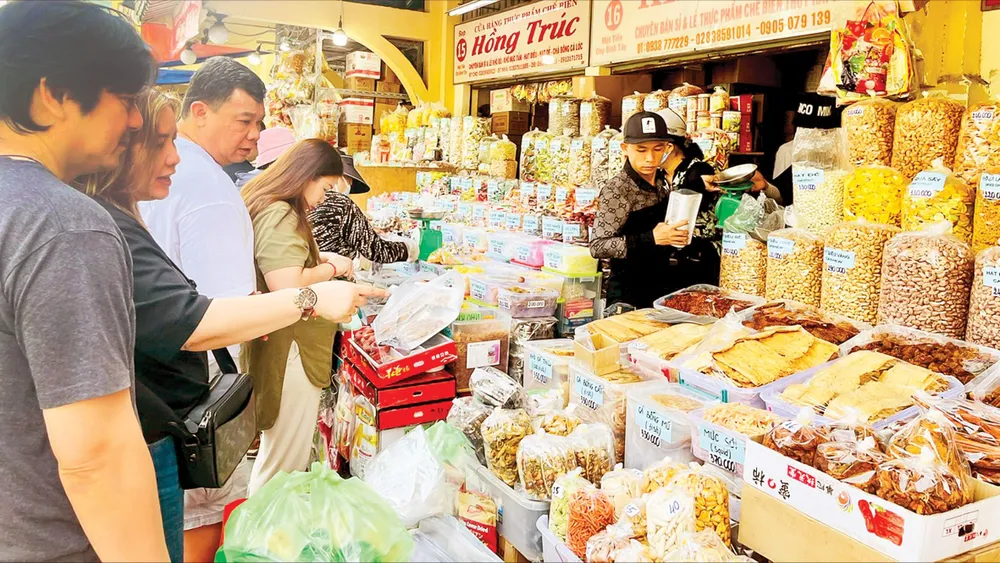 Ở một số chợ như Bình Tây (quận 6), An Đông (quận 5)… cũng đón lượng khách tăng hơn so với ngày bình thường, bao gồm cả bạn hàng ở tỉnh cũng như nhóm khách lẻ, du khách quốc tế tham quan kết hợp mua sắm. Phản ánh từ một số tiểu thương, mặc dù sức mua chưa được như kỳ vọng, nhưng đã có không khí mua sắm tết.