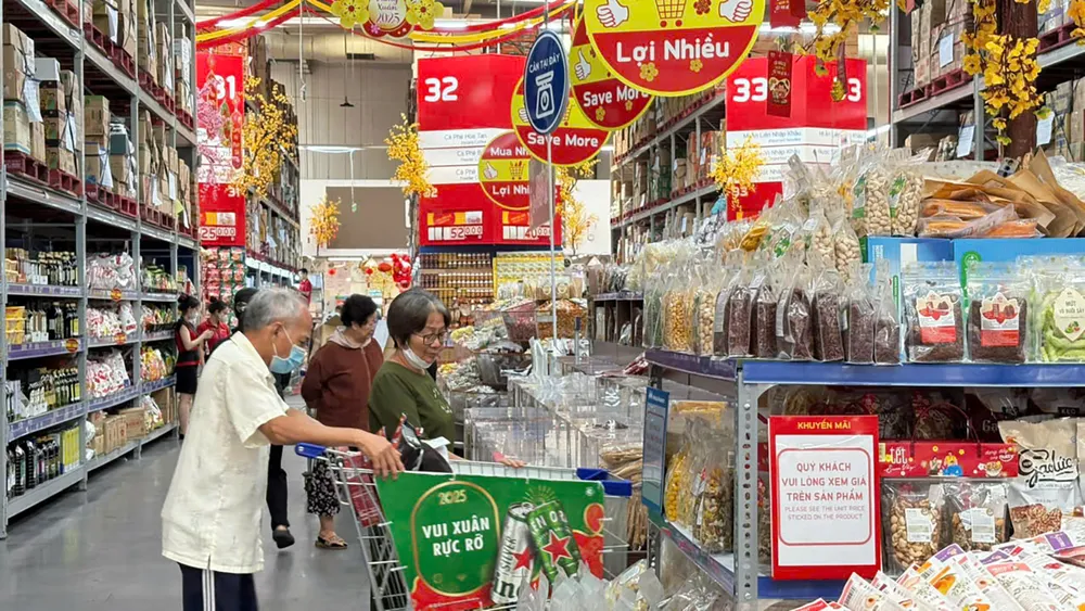 Tính đến chiều 9-1, sức mua tại chuỗi siêu thị bán lẻ trực thuộc Tập đoàn Central Retail Việt Nam (GO, BigC, Tops Market…) tăng từ 20-30% so với ngày bình thường và tăng hơn 10% so với cùng kỳ năm trước. Nhóm mặt hàng quà biếu, tặng dịp tết gồm trà, bánh kẹo, bia, nước ngọt… được khách quan tâm nhiều. Khoảng 10.000 sản phẩm hàng tiêu dùng nhanh được hệ thống “khóa giá”, không tăng giá bán dịp tết.