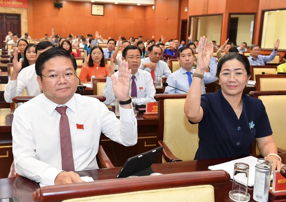 ĐB HĐND TPHCM biểu quyết thông qua dự thảo nghị quyết. Ảnh: VIỆT DŨNG