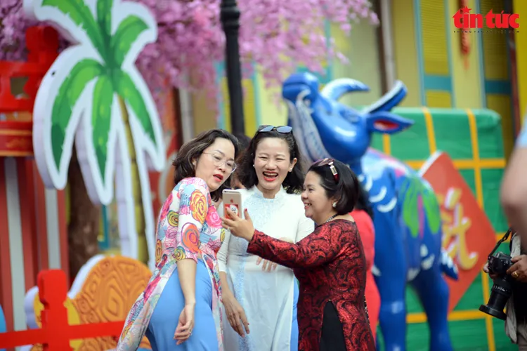 Những ngày gần đây, các tuyến phố, trung tâm thương mại tại TP Hồ Chí Minh rực rỡ sắc đỏ đón Tết Nguyên đán 2024 với các chậu hoa cúc vàng rực, câu đối đỏ, tiểu cảnh sắc màu bắt mắt... Đây là không gian lý tưởng cho các người dân và du khách xúng xính áo dài đến đây chụp ảnh Tết 2024.