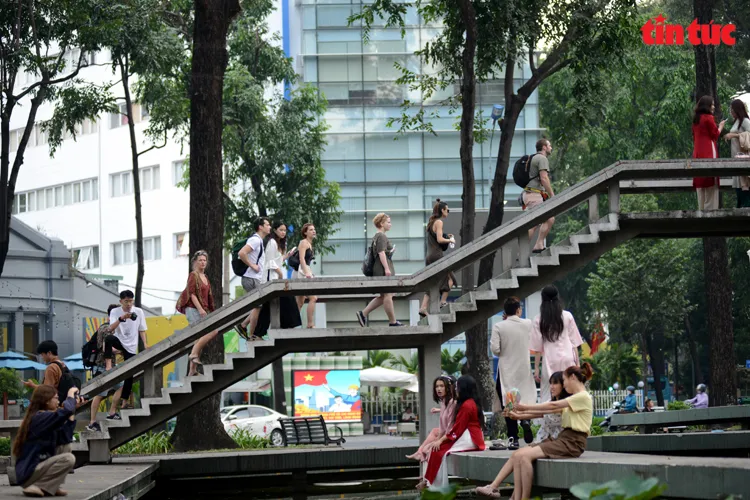 Nhiều bạn trẻ chọn nơi đây chụp ảnh vì khung cảnh mang nét kiến trúc cổ xưa, có hồ nước, ánh sáng đẹp, nằm ở trung tâm thành phố và không mất phí.