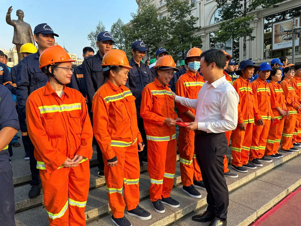 Dịp này lãnh đạo UBND TPHCM, Sở TN-MT cũng đã trao quà chúc tết cho đại diện công nhân vệ sinh môi trường trên địa bàn