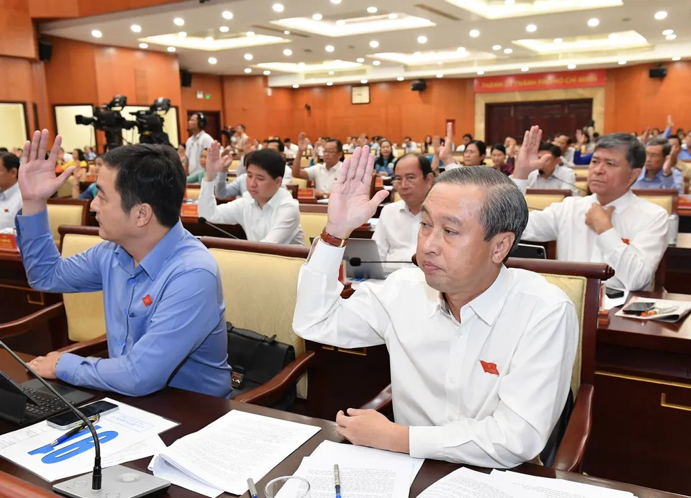Đại biểu HĐND TPHCM biểu quyết thông qua nghị quyết. Ảnh: VIỆT DŨNG