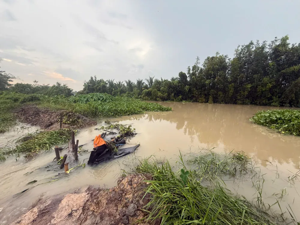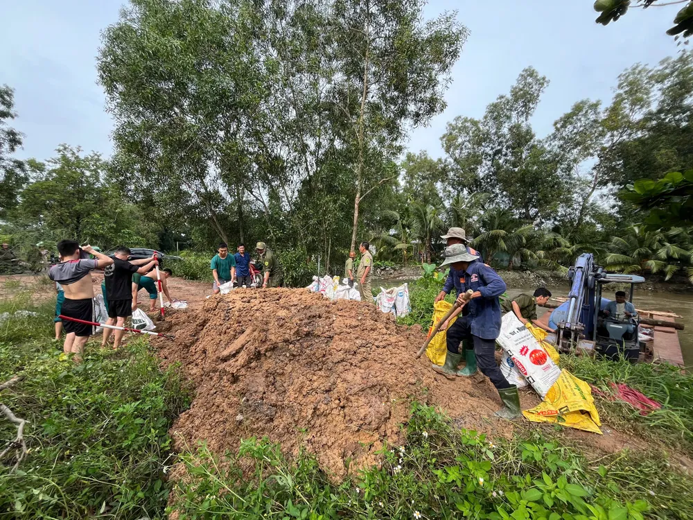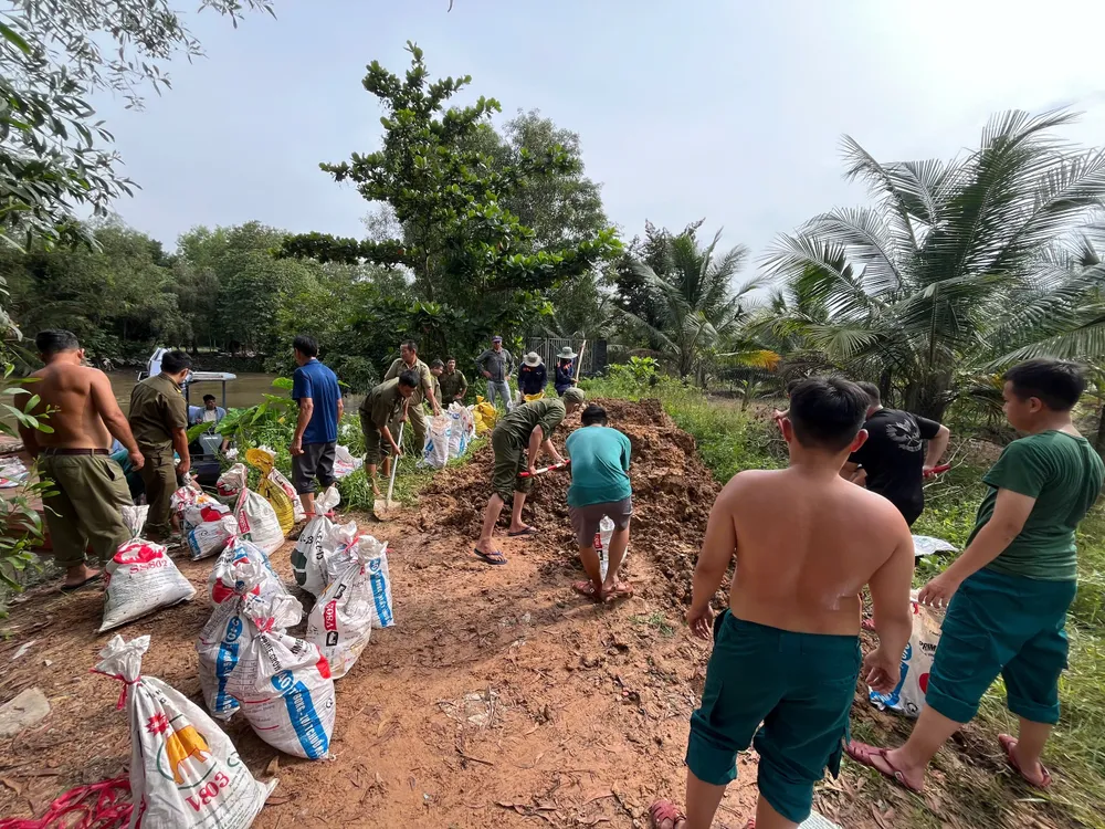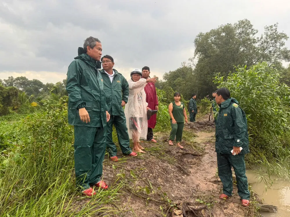 Lãnh đạo phường Phú An chỉ đạo trực tiếp tại khu vực gia cố bờ bao
