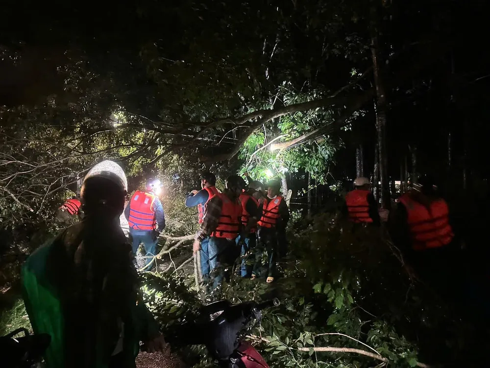 Trong đêm 25-10, các lực lượng phường Tây Nam cùng người dân dọn dẹp môi trường, cây xanh ngã đỗ