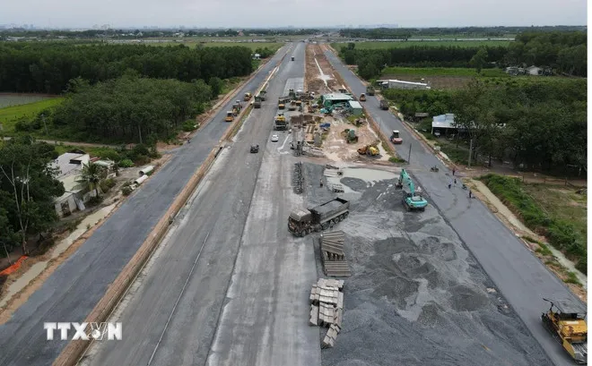 Nhiều máy móc thi công đường Vành đai 3 - TPHCM đoạn qua Đồng Nai. (Ảnh: Công Phong/TTXVN)
