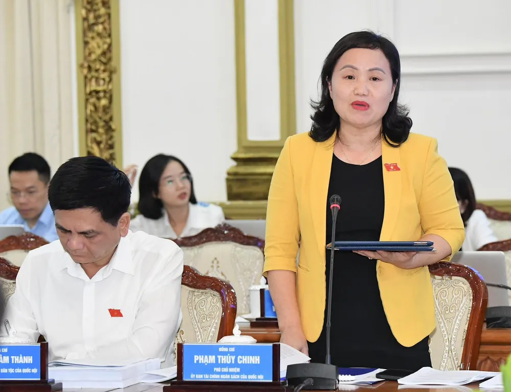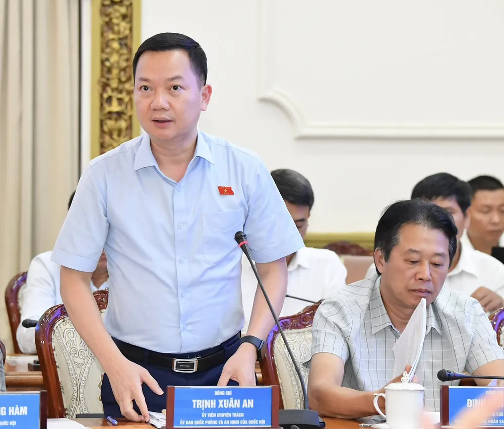 Thành viên đoàn giám sát phát biểu tại buổi làm việc. Ảnh: VIỆT DŨNG