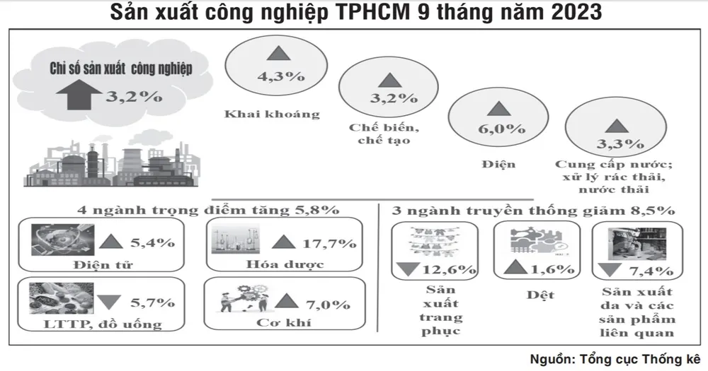 Theo Viện Nghiên cứu phát triển TPHCM, từ tháng 4 đến nay, một số động lực tăng trưởng kinh tế đã có dấu hiệu khởi sắc và tiếp tục giữ được đà phục hồi. Chỉ số sản xuất công nghiệp của TPHCM tăng nhẹ, phù hợp với mức cải thiện hàng tháng. Ngành du lịch duy trì mức tăng khá ổn định, sẽ có tác động lan tỏa lớn tới nhiều ngành dịch vụ thị trường như vận tải, lưu trú ăn uống, lữ hành, hoạt động nghệ thuật, vui chơi giải trí... Bên cạnh đó, tiêu dùng hàng hóa giữ đà tăng trưởng qua các quý và khởi sắc hơn trong 8 tháng, kỳ vọng các tháng cuối năm sẽ tiếp tục giữ đà, do tác động từ việc tăng lương cơ sở.