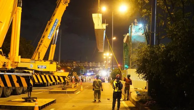 Cầu bộ hành đầu tiên trong 9 cầu của tuyến Metro số 1 tại TP Hồ Chí Minh đã bắt đầu được lắp đặt tại nhà ga Khu Công nghệ cao, TP Thủ Đức. Cầu bộ hành này được thi công từ 0 - 4h vào những ngày cuối tuần để không ảnh hưởng các xe lưu thông.
