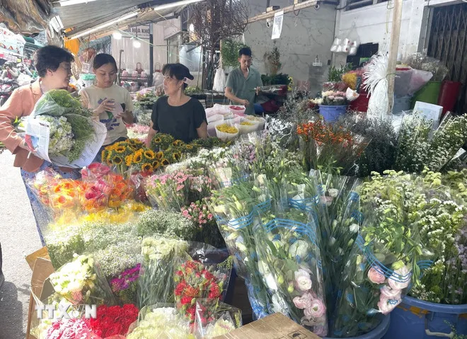 Giá hoa trước lễ tại TPHCM nhích nhẹ 20-30% so với bình thường. (Ảnh: Hương Giang/TTXVN)
