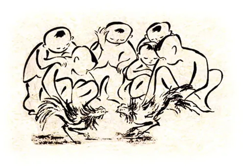 Cả đám đông giải tán nhanh chóng. Không người thắng, kẻ bại bởi hai chú gà chiến đều hy sinh. Hai ông già buồn bã nhìn nhau không nói và ôm lấy chú gà thân yêu của mình rươm rướm nước mắt.