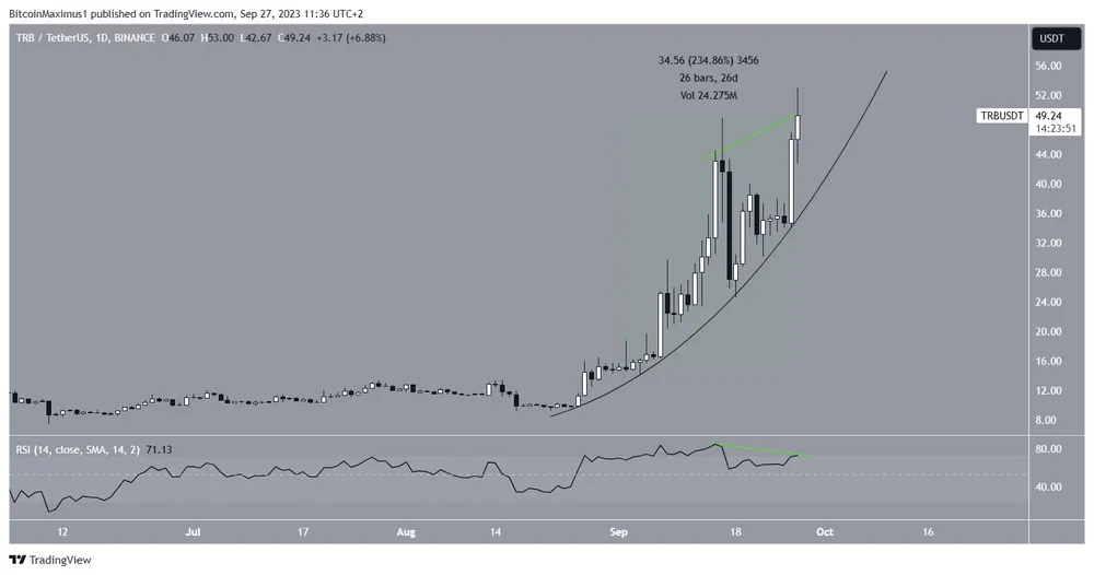 Giá TRB đã tăng với tốc độ nhanh kể từ đầu tháng 9. Trong khoảng thời gian 26 ngày, giá đã tăng 235%.