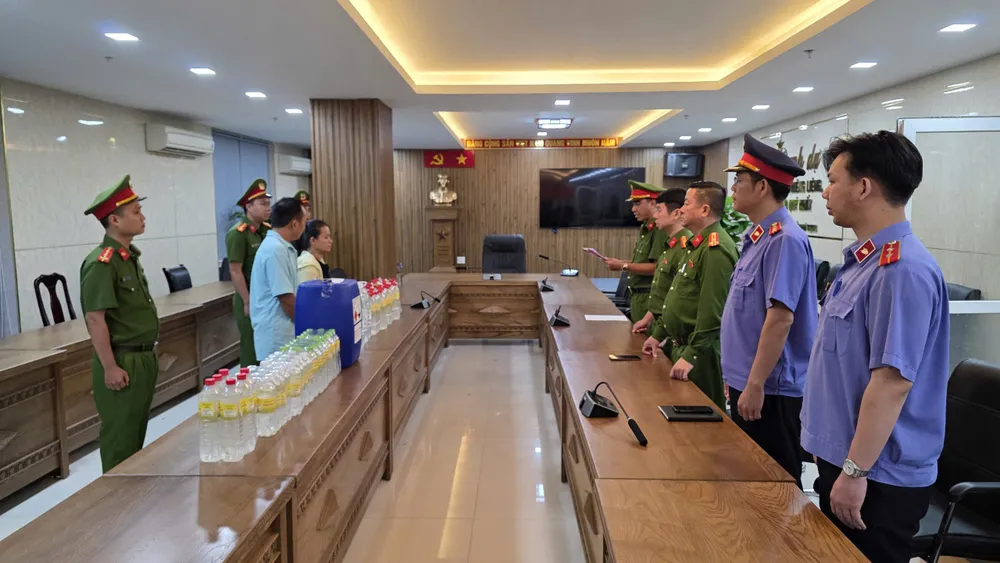 Quá trình khám xét xưởng sản xuất, Phòng Cảnh sát kinh tế thu giữ hơn 2.000 chai giấm giả thành phẩm (tương đương hơn 2.000 lít giấm giả), cùng 20 can axit axetic nguyên chất (tương đương khoảng 600 lít axit). Nếu không kịp thời phát hiện, ngăn chặn, số nguyên liệu này có thể được sử dụng để sản xuất khoảng 30.000 lít giấm giả đưa ra thị trường.
