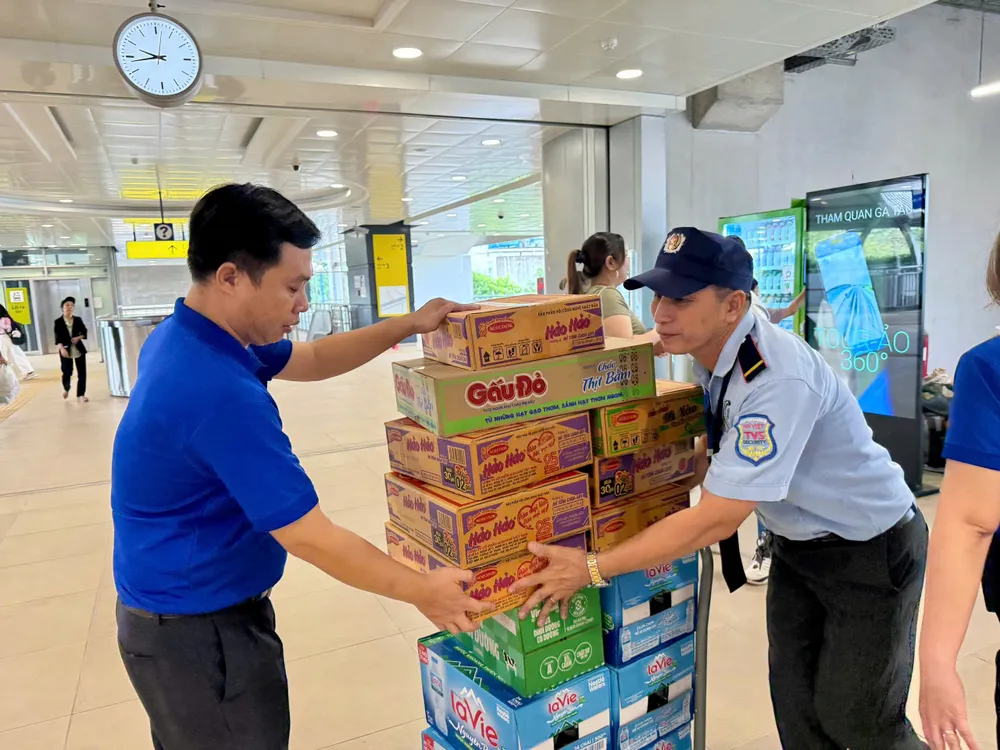 Người dân TPHCM đến các nhà ga metro gửi tặng các phần quà cứu trợ