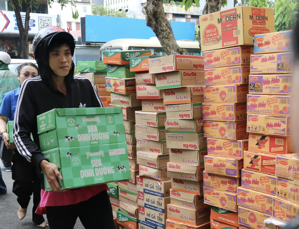 Hàng hóa tập kết về Ủy ban MTTQ Việt Nam TPHCM. Ảnh: VIỆT DŨNG