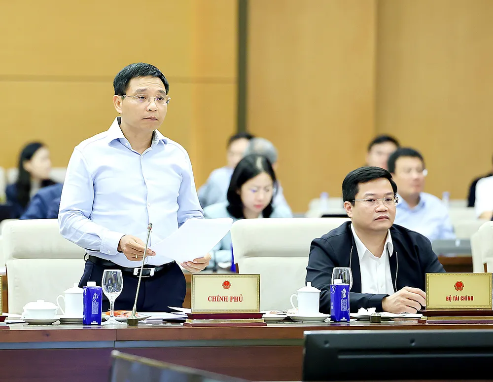 Bộ trưởng Bộ Tài chính Nguyễn Văn Thắng trình bày tóm tắt tờ trình về dự án Nghị quyết của Quốc hội sửa đổi, bổ sung một số điều Nghị quyết số 98/2023/QH15, chiều 24-11. Ảnh: QUANG PHÚC