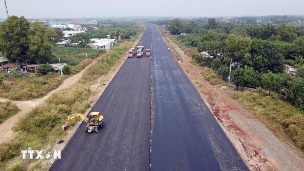 Thi công dự án đường cao tốc Biên Hòa-Vũng Tàu đoạn qua tỉnh Bà Rịa-Vũng Tàu. (Ảnh: Đoàn Mạnh Dương/TTXVN)