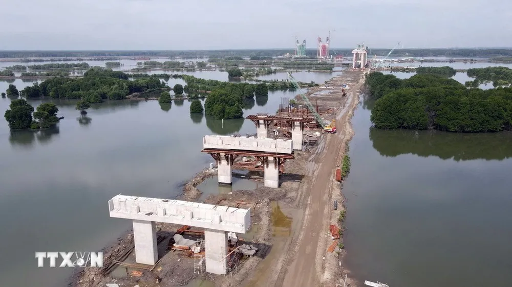 Thi công đường dẫn vào cầu Phước An nối đường liên cảng Cái Mép-Thị Vải với tỉnh Đồng Nai. (Ảnh: Đoàn Mạnh Dương/TTXVN)