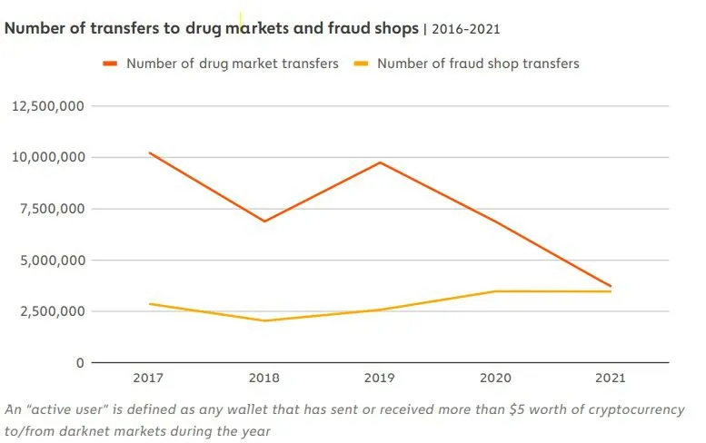 Trong báo cáo của của Chainalysis - “Báo cáo tội phạm tiền điện tử năm 2022″, hoạt động rửa tiền chỉ chiếm 0,05% tổng khối lượng giao dịch tiền điện tử vào năm 2021. Nền tảng dữ liệu cũng trích dẫn rằng “Văn phòng Ma túy và Tội phạm của Liên hợp quốc ước tính rằng từ 800 tỷ đến 2 nghìn tỷ USD tiền fiat (tiền pháp định) được rửa mỗi năm – chiếm 5% GDP toàn cầu”.