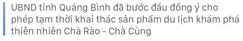 Để minh chứng cho vùng đất đẹp, UBND xã Trường Sơn cho biết, UBND tỉnh Quảng Bình đã bước đầu đồng ý cho phép tạm thời khai thác sản phẩm du lịch khám phá thiên nhiên Chà Rào – Chà Cùng, đây là nơi có phong cảnh đẹp, là điểm hấp dẫn du khách trong thời gian qua.