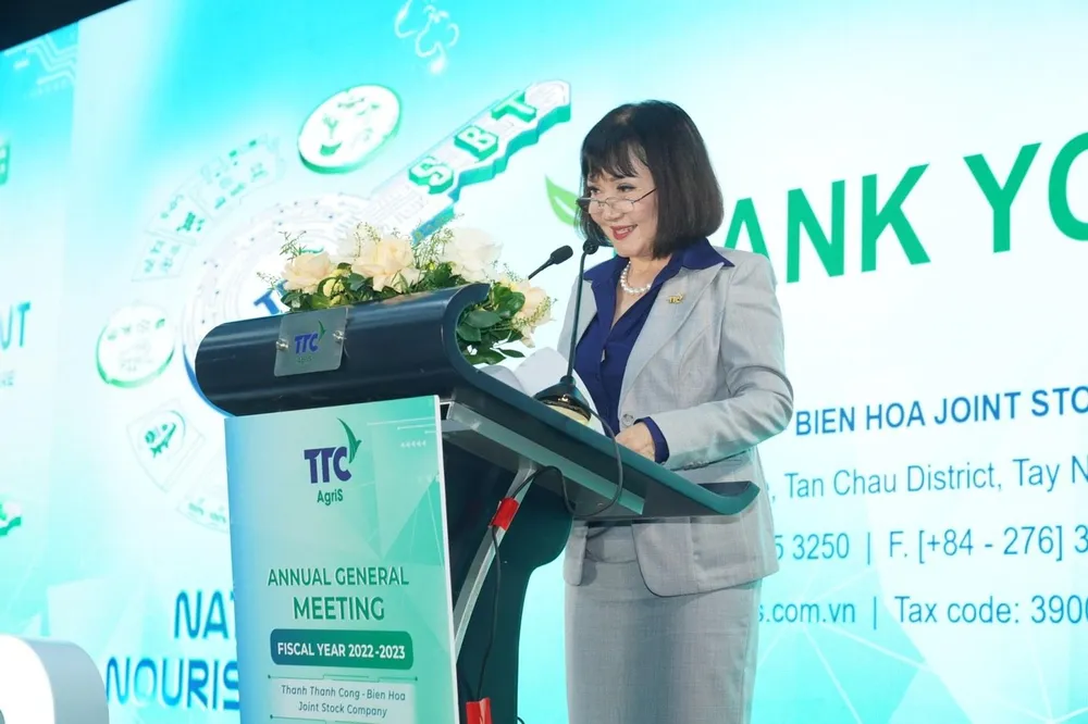 Phát biểu tại ĐHCĐ thường niên niên độ 2022-2023, bà Huỳnh Bích Ngọc, Chủ tịch HĐQT chia sẻ: “Phát triển bền vững là chiến lược xuyên suốt trong hành trình phát triển của TTC AgriS. Chúng tôi lấy chiến lược Xanh làm nền tảng cho phát triển, lợi thế cạnh tranh và cung cấp cho thị trường các giải pháp năng lượng xanh từ sản xuất sạch”.