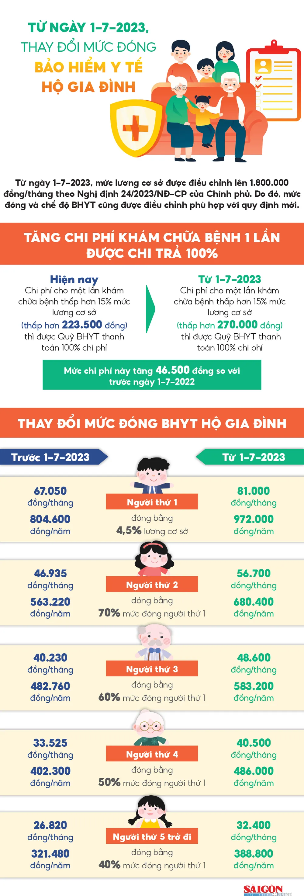 Từ ngày 1-7-2023, thay đổi mức đóng bảo hiểm y tế hộ gia đình