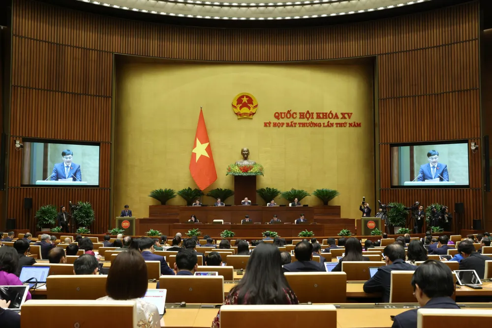 Chủ nhiệm Ủy ban Kinh tế của Quốc hội Vũ Hồng Thanh trình bày dự thảo luật. Ảnh: QUANG PHÚC