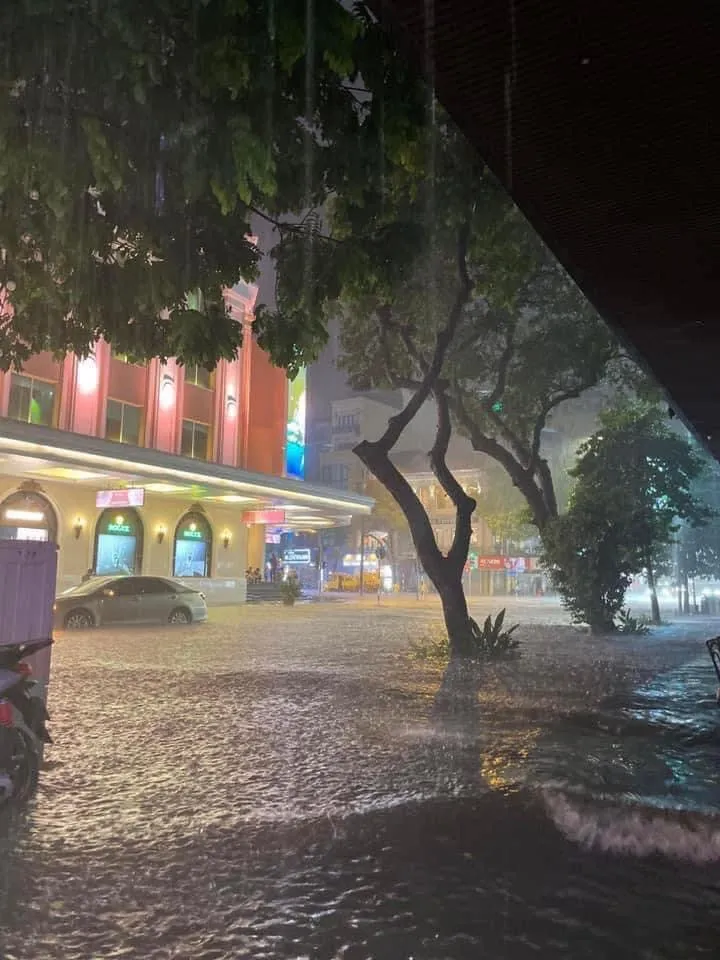 Khu vực Hàng Bài - Tràng Tiền (Hà Nội) ngập nặng do mưa tối 12-5. Ảnh tư liệu