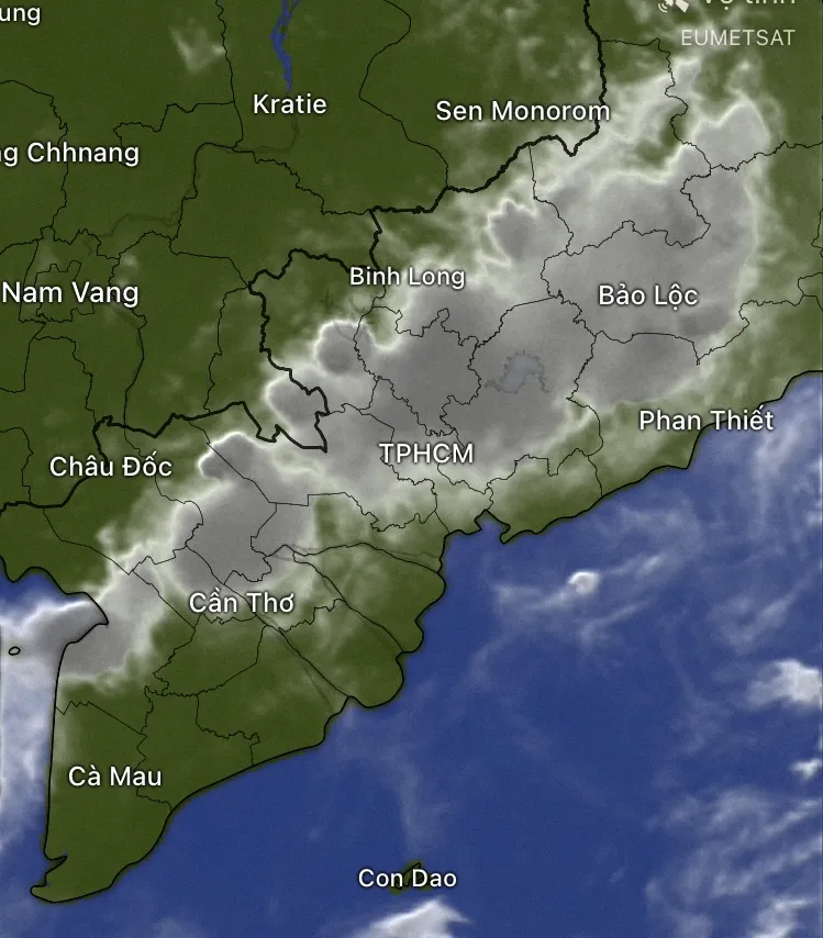 Ảnh mây vệ tinh tại TPHCM và Tây Nguyên chụp lúc 19 giờ ngày 14-5