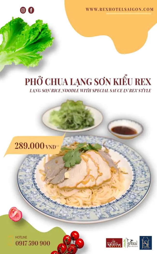 Đây là một món ăn vừa ngon vừa lạ miệng, được nhiều người yêu thích, đặc biệt là rất phù hợp để thay đổi khẩu vị trong những ngày nắng nóng. Vì vậy khách sạn Rex Sài Gòn sẽ phục vụ món “Phở chua Lạng Sơn kiểu Rex” trong thực đơn món ngon của tháng để giới thiệu đến nhiều thực khách cùng trải nghiệm.