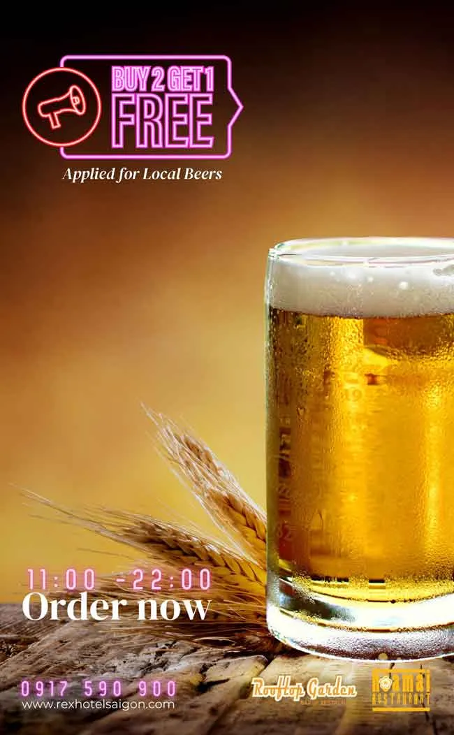 +Mua 02 bia địa phương bất kỳ TẶNG 01 trong 3 loại bia gồm Saigon Special, Saigon đỏ, hoặc 333.
