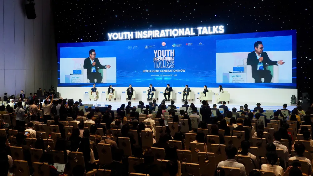 Sáng 25-11, talkshow mở màn Diễn đàn Kinh tế mùa thu 2025 diễn ra với chủ đề “Thế hệ thông minh đương thời - Intelligent Generation NOW”. Chương trình có sự đồng hành của Diễn đàn Kinh tế Thế giới (WEF) và sự tham gia của UNESCO, RMIT Việt Nam và Tập đoàn CMC, talkshow quy tụ hơn 500 bạn trẻ tiêu biểu.