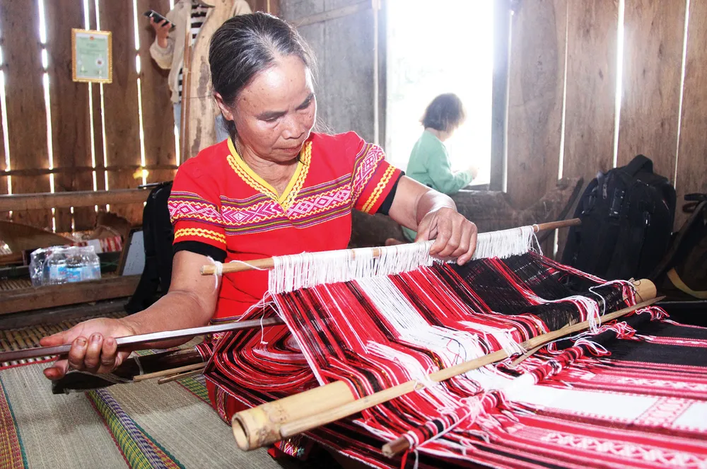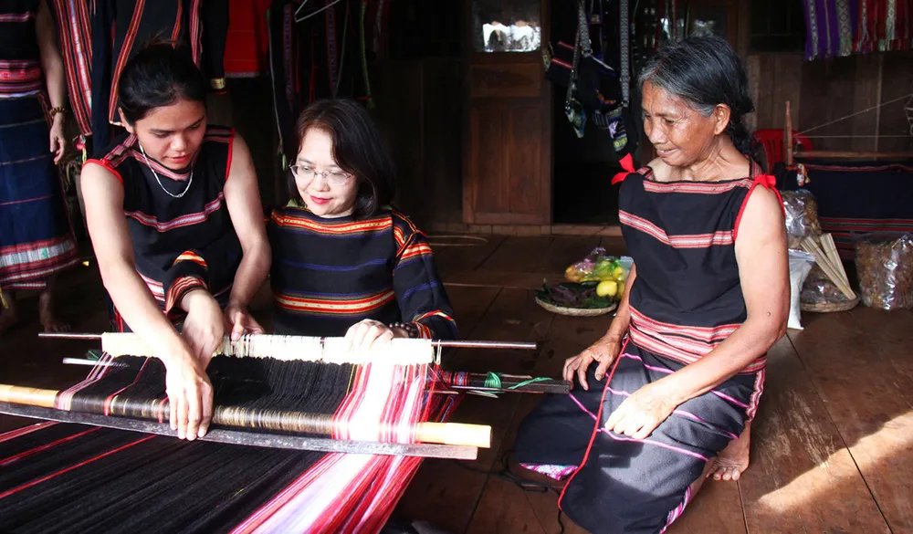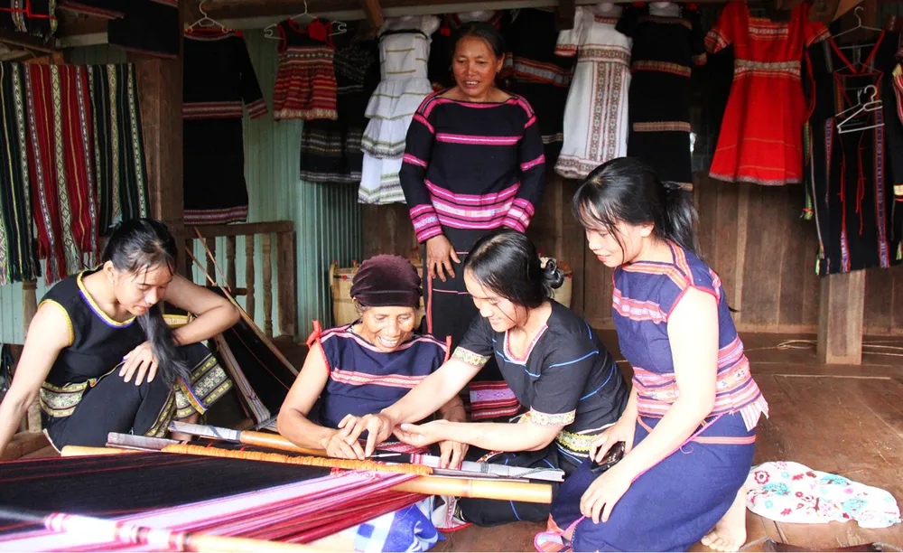 Người già ở làng thổ cẩm Hà Văn Trên (tỉnh Bình Định) đang bền bỉ gìn giữ, truyền dạy nghề dệt cổ truyền của người Ba Na