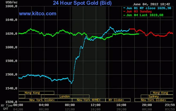 Kết thúc ngày giao dịch, giá vàng giao ngay giảm 0,2% xuống 1.621,64 USD/oz. Trong khi đó, giá vàng tương lai giao tháng 8 giảm 1,4 USD xuống 1.623,5 USD/oz. Giao dịch tại thị trường châu Âu khá mỏng do thị trường London đóng cửa nghỉ lễ trong 2 ngày.