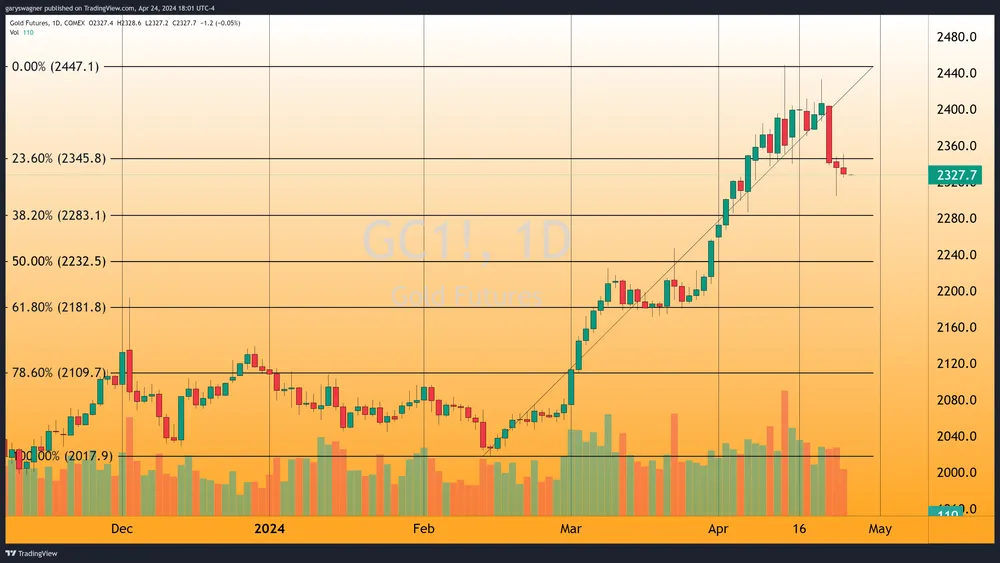 Tính đến 5:25 chiều EDT, hợp đồng tương lai vàng trên cơ sở hợp đồng Comex hoạt động tích cực nhất vào tháng 6/2024 hiện đang giao dịch ở mức giảm 6,80 USD, tương đương 0,29% ở mức 2.328,90 USD với khối lượng nhẹ là 178.285 hợp đồng được giao dịch. Hợp đồng tháng 4 mở cửa ở mức 2.335,70 USD, giao dịch trong khoảng từ 2.324,80 USD đến 2.350,90 USD trước khi chốt ở mức 2.328,90 USD.