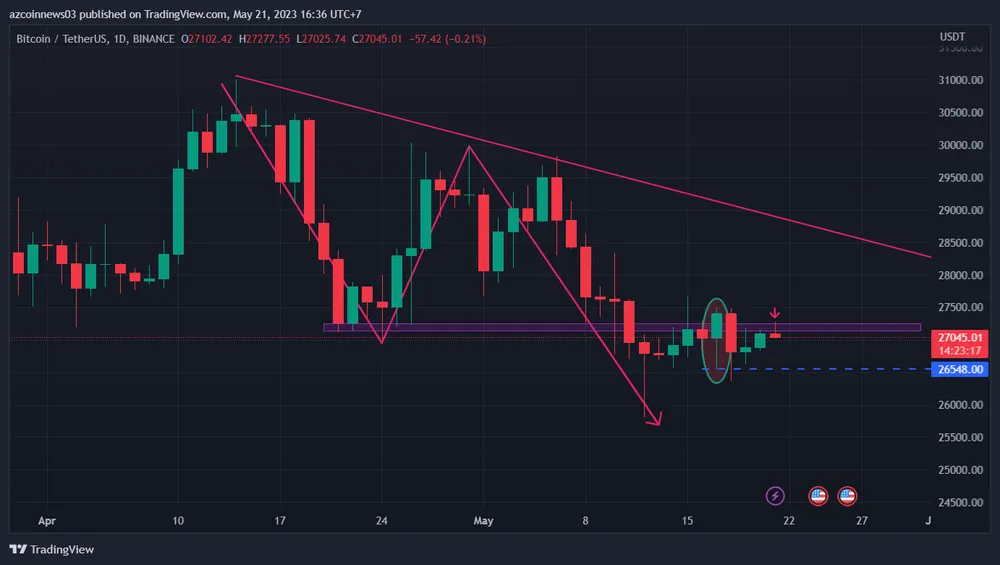 Hiện tại, BTC đang trong quá trình xác nhận vùng 27.100 USD làm kháng cự một lần nữa. Nếu thành công, một đợt giảm mạnh có thể theo sau.