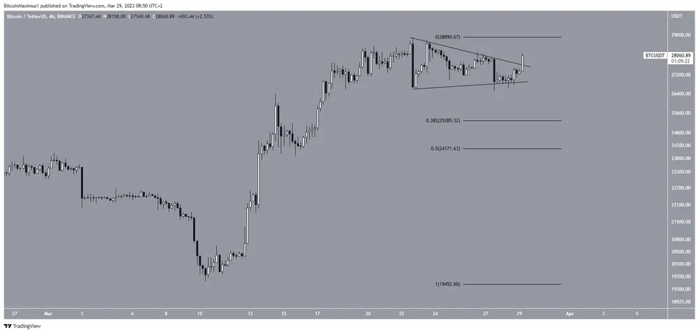 BTC đã bứt phá lên trên tam giác vào ngày hôm qua và có thể tiếp tục tăng tới 29.000 USD.