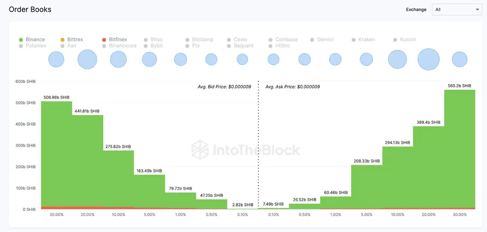 Để xác nhận điều này, biểu đồ Độ sâu thị trường on-chain của sàn giao dịch từ IntoTheBlock cho thấy phe gấu Shiba Inu bắt đầu xây dựng tường bán.