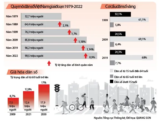 Ông Nguyễn Trung Tiến, Phó Tổng cục trưởng Tổng cục Thống kê, nhận định, việc đạt quy mô dân số 100 triệu người là dấu mốc quan trọng, tạo cơ hội cho nước ta nâng cao vị thế trong khu vực và trên thế giới trong bối cảnh các nước đều coi nguồn nhân lực là lợi thế của quốc gia. Đây sẽ là cơ hội nếu đầu tư hiệu quả cho giáo dục - đào tạo, phát triển nguồn nhân lực, nâng cao kỹ năng, trình độ lao động. Song, đây cũng là thách thức lớn khi xu hướng già hóa dân số đang diễn ra nhanh.