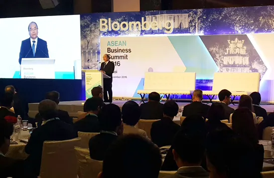 (ĐTTCO).- Sáng nay, 8-12, tại Hà Nội, Hội nghị Thượng đỉnh kinh doanh ASEAN Bloomberg 2016 đã diễn ra với sự tham dự của Thủ tướng Nguyễn Xuân Phúc. Đây là năm thứ 3 Hội nghị Thượng đỉnh kinh doanh ASEAN Bloomberg được tổ chức, nhưng là năm đầu tiên quy tụ các nhà lãnh đạo ASEAN trong lĩnh vực kinh doanh, tài chính đến cơ quan chính phủ có mặt tại Việt Nam tham dự.