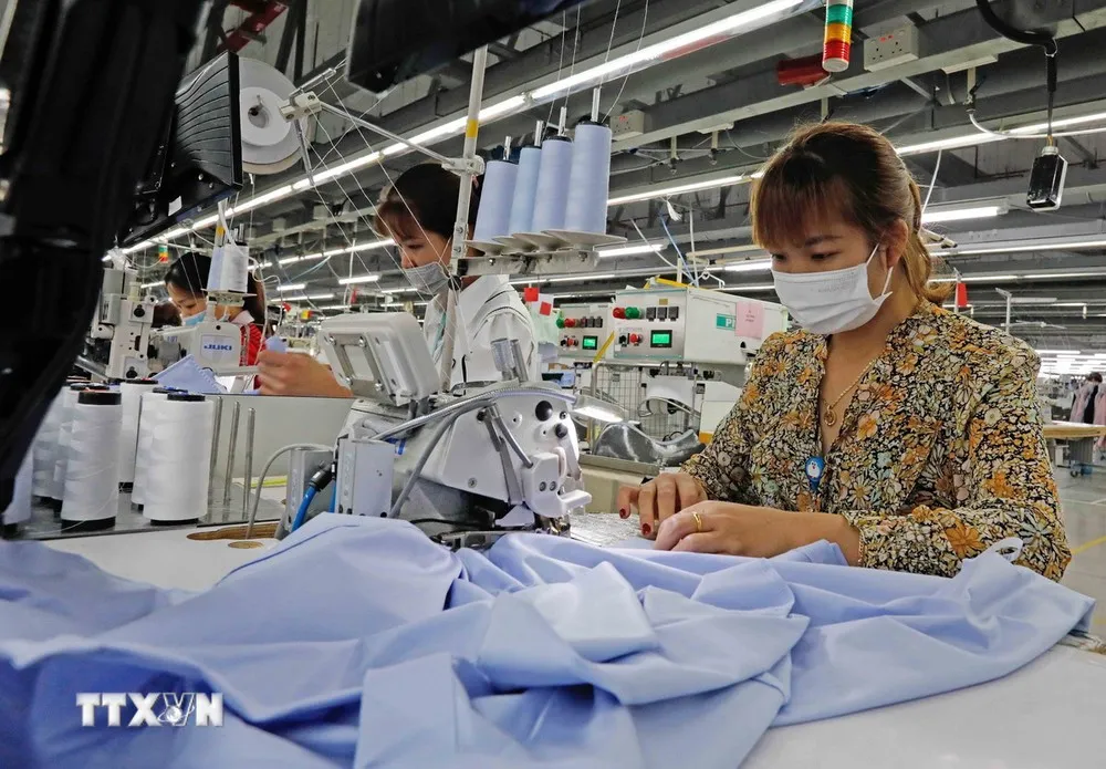 Dây chuyền may mặc. (Ảnh: Trần Việt/TTXVN)