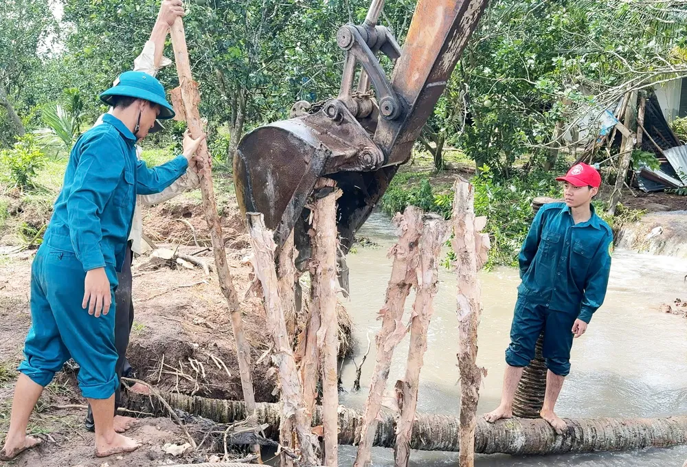 Trước đó, ngày 23-10, tuyến đê bao Cồn Thanh Long bị vỡ 1 đoạn dài 15m, làm ngập 15ha vườn cây ăn trái (sầu riêng, chôm chôm và nhãn) đang trong thời kỳ cho trái; hoạt động sinh hoạt, đi lại của nhiều hộ dân trong khu vực cũng bị ảnh hưởng.